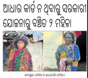 ଆଧାର କାର୍ଡ ନ ଥିବାରୁ ସରକାରୀ ଯୋଜନାରୁ ବଞ୍ଚିତ ୨ ମହିଳା