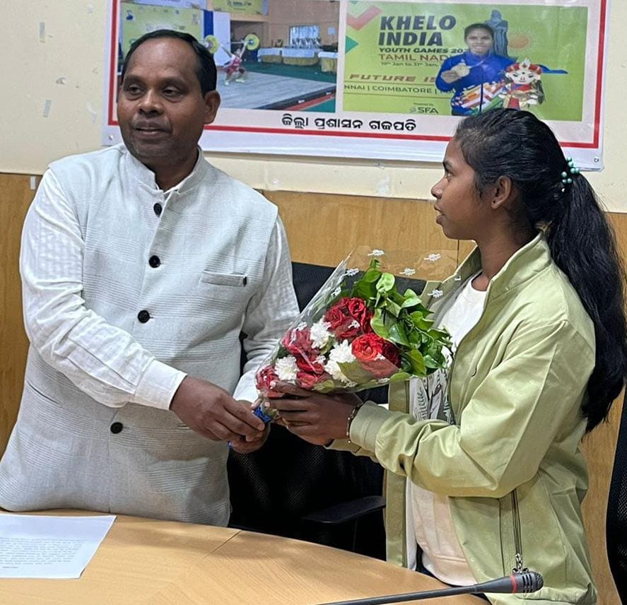 ଉତ୍ତୋଳନରେ ପ୍ରଶିକ୍ଷଣ ଗ୍ରହଣ କରିଆସୁଛନ୍ତି । ଜ୍ୟୋସ୍ନାଙ୍କ ଏହି ସଫଳତାରେ ସମଗ୍ର ଗଜପତି ଜିଲ୍ଲାବାସୀ ଏବଂ ଜିଲ୍ଲା ପ୍ରଶାସନ ଗର୍ବିତ ଅନୁଭବ କରିବା ସହ ତାଙ୍କୁ ପ୍ରଶାସନ ତରଫରୁ ପୁଷ୍ପଗୁଚ୍ଛ ପ୍ରଦାନ କରି ସମ୍ବର୍ଦ୍ଧିତ କରାଯାଇଛି.