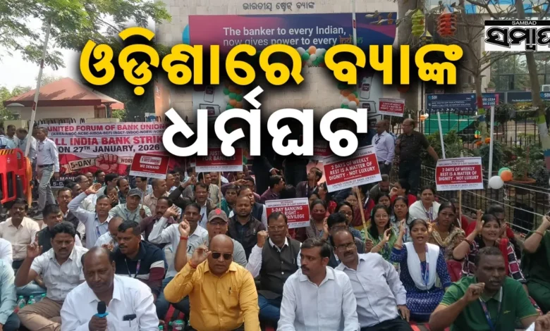 ରାଜ୍ୟରେ ବ୍ୟାଙ୍କ ଧର୍ମଘଟ: ୩୭ ହଜାର କର୍ମଚାରୀ ସାମିଲ, ଚେକ୍ କ୍ଲିୟରିଂ, ନଗଦ କାରବାର ବାଧାପ୍ରାପ୍ତ,୧୦ ହଜାର କୋଟିର କାରବାର ପ୍ରଭାବିତ