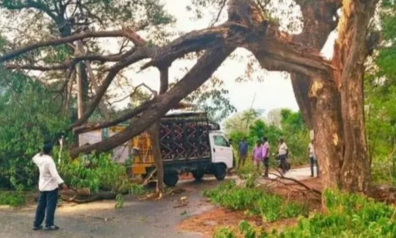 ଗଜପତି ଜିଲ୍ଲା ରାୟଗଡ଼ ବ୍ଲକରେ କାଳବୈଶାଖୀର ତାଣ୍ଡବ ଗଛ ପଡ଼ି ଜାତୀୟ ରାଜପଥ ଅବରୋଧ