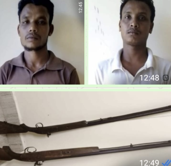 ପାରଳାଖେମୁଣ୍ଡି:୫/୬(ଗରୁଡ ଧ୍ଵଜ ଚୌଧୁରୀ) ଗଜପତି ଜିଲ୍ଲାର ସଦର ମହକୁମା ପାରଳାଖେମୁଣ୍ଡି ସହରର ଉପକଣ୍ଠ ରେ ଥିବା ଡ଼ାକ୍ତର ବଞ୍ଜେରୀ ଗ୍ରାମ ଅଞ୍ଚଳରେ ରାତ୍ର ପ୍ରାୟ ୯-୩୦ ମିନିଟ ସମୟରେ, ପାରଳାଖେମୁଣ୍ଡି ପୋଲିସ ଷ୍ଟେସନର ସବ-ଇନ୍ସପେକ୍ଟର ପ୍ରଫୁଲ୍ଲ ଜଗାରଙ୍ଗା , ପିଏସ୍ ଷ୍ଟାଫ୍ ସହିତ ପାଟ୍ରୋଲିଂ କରୁଥିବା ସମୟରେ ଦୁଇ ଜଣ ଯୁବକଙ୍କୁ ସନ୍ଦେହ କରି ଅଟକାଇ ଥିଲେ। ସନ୍ଦିଗ୍ଧ ବ୍ୟକ୍ତିମାନେ ଓଡ଼ି-୧୮ ଏଚ – ୧୬୧୩ ନମ୍ୱର୍ ବିଶିଷ୍ଟ ପଞ୍ଜିକରଣ ନମ୍ବର ଥିବା ଗାଡ଼ିରେ ପାରଳାଖେମୁଣ୍ଡି ଅଭିମୁଖେ ଯାଉଥିବା ସମୟରେ ସାଙ୍ଗରେ ଦୁଇଟି ବନ୍ଧୁକ ଧରି ଯାଉଥିଲେ।ସନ୍ଦିଗ୍ଧ ବ୍ୟକ୍ତିମାନଙ୍କୁ ଧରିବା ପରେ, ପୋଲିସ ଦଳ ସେମାନଙ୍କୁ ପଚରା ଉଚୁରା କରି ସେମାନଙ୍କ ନିକଟରୁ ଦୁଇଟି ଏସ:ବି:ଏମ୍:ଏଲ (ସିଙ୍ଗଲ୍ ବ୍ୟାରେଲ୍ ମଜଲ୍ ଲୋଡିଂ) ବନ୍ଧୁକ ଜବତ କରିଥିଲା। ବ୍ୟକ୍ତିମାନଙ୍କୁ ଚିହ୍ନଟ କରି ଜଣାଯାଇଛି ଯେ , ସେ ଦୁଇ ଜଣ ହେଲେ (୧):. ଅରୁଣ ଗୋମାଙ୍ଗୋ , ବୟସ ୨୫ ବର୍ଷ ଏବଂ ଅନ୍ୟ ଜଣେ ହେଲା (୨):- ପ୍ରତାପ ଗୋମାଙ୍ଗୋ , ବୟସ ୩୧ ବର୍ଷ।