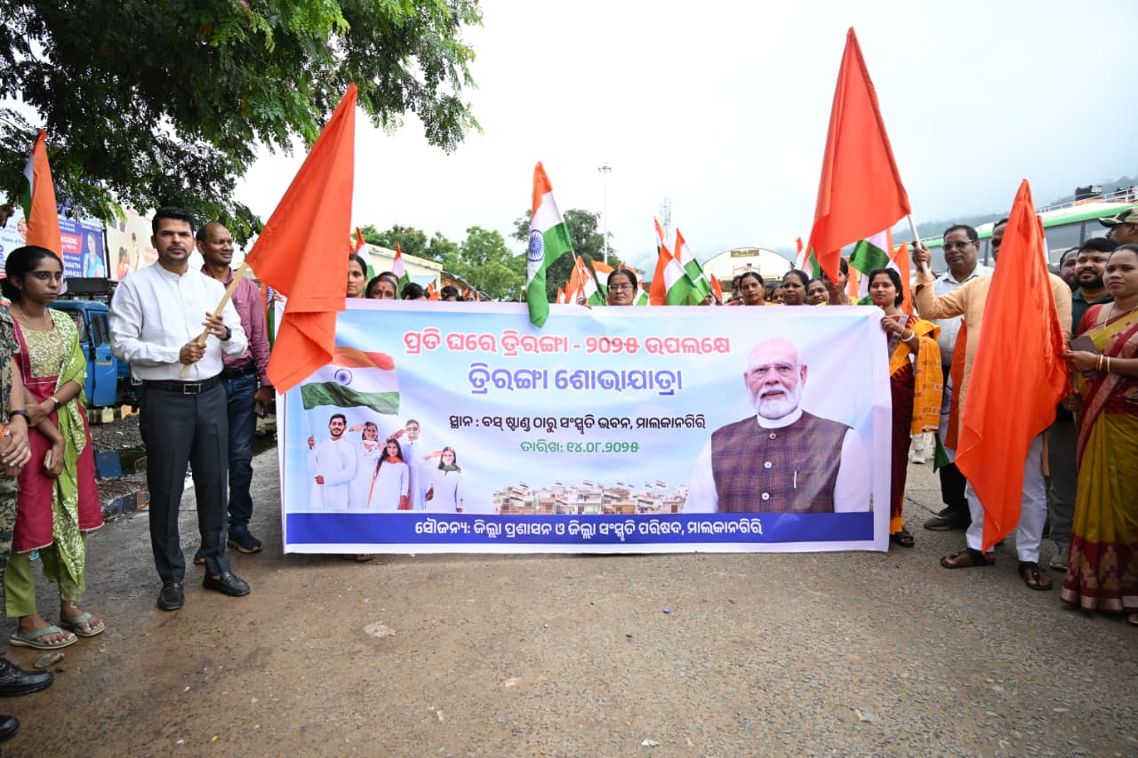 ମାଲକାନଗିରି, ୧୪/୮: ୭୯ତମ ସ୍ଵାଧୀନତା ଦିବସ ପାଳନ ପୂର୍ବରୁ ଆଜି ମାଲକାନଗିରି ଜିଲ୍ଲା ପ୍ରଶାସନ ତରଫରୁ ଘରେ ଘରେ ତ୍ରିରଙ୍ଗା ଉତ୍ସବ ପାଳନ କରାଯାଇଛି ।ଏହି ଅବସରରେ ମାଲକାନଗିରି ଜିଲ୍ଲା ପ୍ରଶାସନ ପକ୍ଷରୁ ବସ୍ ଷ୍ଟାଣ୍ଡ ଠାରୁ ସଂସ୍କୃତି ଭବନ ପର୍ଯ୍ୟନ୍ତ ଘରେ ଘରେ ତ୍ରିରଙ୍ଗା ପଦଯାତ୍ରା ଉତ୍ସବ ଜିଲ୍ଲାପାଳ ସୋମେଶ ଉପାଧ୍ୟାୟଙ୍କ ପ୍ରତ୍ୟକ୍ଷ ତତ୍ତ୍ଵାବଧାନରେ ପାଳନ କରାଯାଇଛି। ଏହି କାର୍ଯ୍ୟକ୍ରମରେ ମାଲକାନଗିରି ବିଧାୟକ ନରସିଂହ ମାଡକାମୀ ମୁଖ୍ୟଅତିଥି ଭାବେ ଯୋଗଦେଇ ଏହାକୁ ଉଦ୍‌ଘାଟନ କରିଥିଲେ। ଉପସ୍ଥିତ ଜନତାଙ୍କୁ ସମ୍ବୋଧିତ କରି କହିଲେ ଘରେ ଘରେ ତ୍ରିରଙ୍ଗା ଅଭିଯାନ ଆମ ସମସ୍ତଙ୍କୁ ଦେଶ ପ୍ରେମ ସୂତ୍ରରେ ବାନ୍ଧିବାରେ ସଫଳ ହେଉଛି । ଜାତୀୟ ପତାକା ଦେଶ ବାସୀଙ୍କ ପାଇଁ ସମ୍ମାନ ଓ ଗୌରବ ବହନ କରିଥାଏ। ଏହା ହେଉଛି ଆମ ଦେଶର ପ୍ରତୀକ । ଆମ ଜାତୀୟ ପତାକା ଆମର ସଂକଳ୍ପ, ସଂଘର୍ଷ, ବଳିଦାନ ଓ ତ୍ୟାଗର ପ୍ରେରଣାଦାୟୀ ମୂକସାକ୍ଷୀ, ଏହା ମଧ୍ୟ ରାଷ୍ଟ୍ରୀୟ ଏକତା, ସହିଷ୍ଣୁତା ଓ ବନ୍ଧୁତାର ପ୍ରତୀକ ଅଟେ।