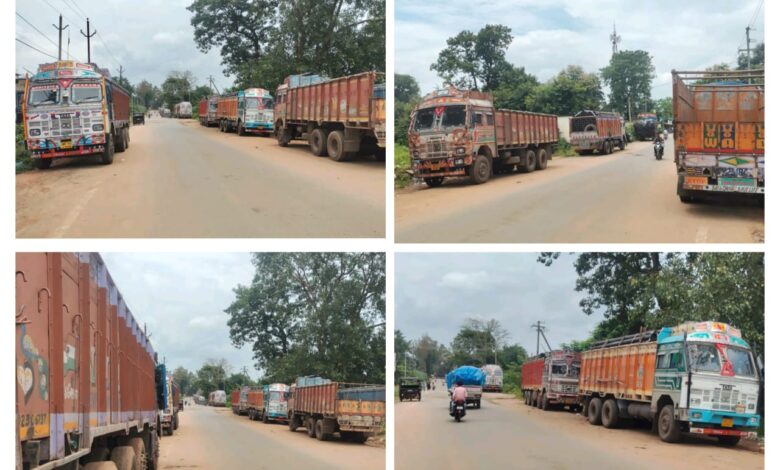 ଆରଟିଓ ନିୟମକୁ ବେଖାତିର କରି ଡାବୁଗାଁ ମୁଖ୍ୟ ରାସ୍ତାରେ ଅଟକି ରହିଛି ମାଳ ମାଳ ଟ୍ରକ, ପ୍ରଶାସବ ନିରବ