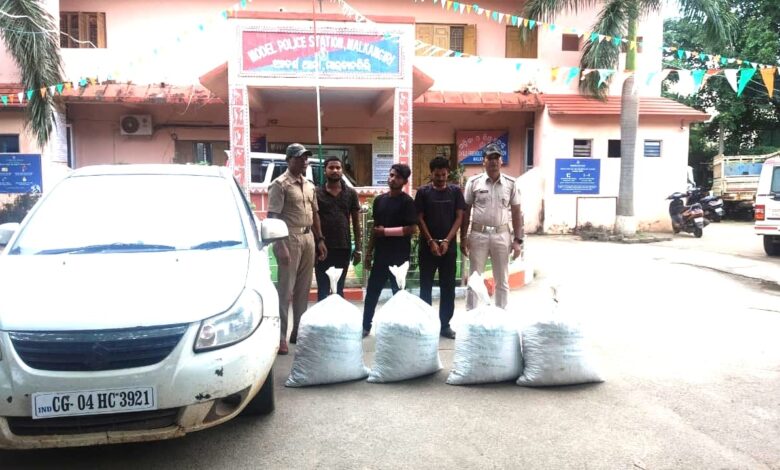 ମାଲକାନଗିରି ଥାନା ସବଇନ୍ସପ୍ଟେର ସର୍ବେଶ୍ୱର ଭୋଇଙ୍କ ନେତୃତ୍ୱରେ ମାଲକାନଗିରି ଜୟପୁର ୩୨୬ ନମ୍ବର ଜାତୀୟ ରାଜପଥ ଚମ୍ପାଖାରୀ ପୋଲିସ ତନଖି ଫାଟକରେ ଯାନବାହାନ ଚେଙ୍କି କରୁଥିବା ସମୟରେ ସେହି ରାସ୍ତା ଦେଇ ଏକ କାର୍ ଦ୍ରୁତଗତିରେ ଯାଉଥିବାର ଦେଖି ଅଟକାଇ ଯାଞ୍ଚ କରା ଯାଇଥିଲା। ତେବେ କାର୍ ମଧ୍ୟରୁ ୪ଟି ଜରି ବସ୍ତାରେ ଗଞ୍ଜେଇ ଥିବାର ଦେଖିବାକୁ ମିଳିଥିଲା। ପୋଲିସ କାର୍ ଓ ଗଞ୍ଜେଇ ବସ୍ତାଗୁଡିକୁ ଜବତ କରିଥିଲା । ଏହା ଛଡା ୩ ଜଣ ଅଭିଯୁକ୍ତଙ୍କୁ ଗିରଫ କରିଥିଲା । ସେମାନେ ହେଲେ ଦୁର୍ଗ ଅଞ୍ଚଳର ଲାଲା ଯାଦବ (୧୯), ସୁକୁମା ଅଞ୍ଚଳର ଗୋଲକ ବିଶ୍ୱାସ (୩୩) ଓ ବିହାର ଅଞ୍ଚଳର ଲାଲାଜି ରାଜଭର (୨୬) । ଏହି ୩ ଜଣ ଯୁବକ ମାଲକାନଗିରିରୁ ଗଞ୍ଜେଇ ଧରି ଛତିଶଗଡ଼ ଦୁର୍ଗ ଅଞ୍ଚଳର ଜଣେ ପଣ୍ଡିତଙ୍କୁ ଗଞ୍ଜେଇ ବିକ୍ରି କରିବା ନିମନ୍ତେ ନେଉଥିଲେ। ପୋଲିସ ସେମାନଙ୍କ ନିକଟରୁ ଏକ କ୍ୱିଣ୍ଟାଲ ଗଞ୍ଜେଇ, କାର୍,୩ଟି ମୋବାଇଲ ଫୋନ ଏବଂ ନଗଦ ୭ହଜାର ଟଙ୍କା ଜବତ କରିଛି। ମାଜିଷ୍ଟ୍ରେଟ ଭାବେ ଡେପୁଟି କଲେକ୍ଟର ଅଜୟ ମାଣ୍ଡାଙ୍ଗୀଙ୍କ ଉପସ୍ଥିତିରେ ଜବତ ଗଞ୍ଜେଇକୁ ଓଜନ କରାଯାଇଥିଲା। ଗଞ୍ଜେଇ ବିକ୍ରି ଓ ଚାଲାଣରେ ସହଯୋଗ କରିଥିବା ଅନ୍ୟ ତିନିଜଣଙ୍କୁ ପୋଲିସ ଅନୁସନ୍ଧାନ କରୁଛି । ଖୁବ ଶୀଘ୍ର ସେମାନଙ୍କୁ ଗିରଫ କରାଯିବ ବୋଲି ମାଲକାନଗିରି ଥାନା ଅଧିକାରୀ ରିଗାନ କିଣ୍ଡୋ ପ୍ରକାଶ କରିଛନ୍ତି।