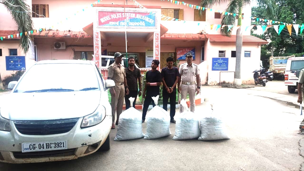 ମାଲକାନଗିରି ଥାନା ସବଇନ୍ସପ୍ଟେର ସର୍ବେଶ୍ୱର ଭୋଇଙ୍କ ନେତୃତ୍ୱରେ ମାଲକାନଗିରି ଜୟପୁର ୩୨୬ ନମ୍ବର ଜାତୀୟ ରାଜପଥ ଚମ୍ପାଖାରୀ ପୋଲିସ ତନଖି ଫାଟକରେ ଯାନବାହାନ ଚେଙ୍କି କରୁଥିବା ସମୟରେ ସେହି ରାସ୍ତା ଦେଇ ଏକ କାର୍ ଦ୍ରୁତଗତିରେ ଯାଉଥିବାର ଦେଖି ଅଟକାଇ ଯାଞ୍ଚ କରା ଯାଇଥିଲା। ତେବେ କାର୍ ମଧ୍ୟରୁ ୪ଟି ଜରି ବସ୍ତାରେ ଗଞ୍ଜେଇ ଥିବାର ଦେଖିବାକୁ ମିଳିଥିଲା। ପୋଲିସ କାର୍ ଓ ଗଞ୍ଜେଇ ବସ୍ତାଗୁଡିକୁ ଜବତ କରିଥିଲା । ଏହା ଛଡା ୩ ଜଣ ଅଭିଯୁକ୍ତଙ୍କୁ ଗିରଫ କରିଥିଲା । ସେମାନେ ହେଲେ ଦୁର୍ଗ ଅଞ୍ଚଳର ଲାଲା ଯାଦବ (୧୯), ସୁକୁମା ଅଞ୍ଚଳର ଗୋଲକ ବିଶ୍ୱାସ (୩୩) ଓ ବିହାର ଅଞ୍ଚଳର ଲାଲାଜି ରାଜଭର (୨୬) । ଏହି ୩ ଜଣ ଯୁବକ ମାଲକାନଗିରିରୁ ଗଞ୍ଜେଇ ଧରି ଛତିଶଗଡ଼ ଦୁର୍ଗ ଅଞ୍ଚଳର ଜଣେ ପଣ୍ଡିତଙ୍କୁ ଗଞ୍ଜେଇ ବିକ୍ରି କରିବା ନିମନ୍ତେ ନେଉଥିଲେ। ପୋଲିସ ସେମାନଙ୍କ ନିକଟରୁ ଏକ କ୍ୱିଣ୍ଟାଲ ଗଞ୍ଜେଇ, କାର୍,୩ଟି ମୋବାଇଲ ଫୋନ ଏବଂ ନଗଦ ୭ହଜାର ଟଙ୍କା ଜବତ କରିଛି। ମାଜିଷ୍ଟ୍ରେଟ ଭାବେ ଡେପୁଟି କଲେକ୍ଟର ଅଜୟ ମାଣ୍ଡାଙ୍ଗୀଙ୍କ ଉପସ୍ଥିତିରେ ଜବତ ଗଞ୍ଜେଇକୁ ଓଜନ କରାଯାଇଥିଲା। ଗଞ୍ଜେଇ ବିକ୍ରି ଓ ଚାଲାଣରେ ସହଯୋଗ କରିଥିବା ଅନ୍ୟ ତିନିଜଣଙ୍କୁ ପୋଲିସ ଅନୁସନ୍ଧାନ କରୁଛି । ଖୁବ ଶୀଘ୍ର ସେମାନଙ୍କୁ ଗିରଫ କରାଯିବ ବୋଲି ମାଲକାନଗିରି ଥାନା ଅଧିକାରୀ ରିଗାନ କିଣ୍ଡୋ ପ୍ରକାଶ କରିଛନ୍ତି।